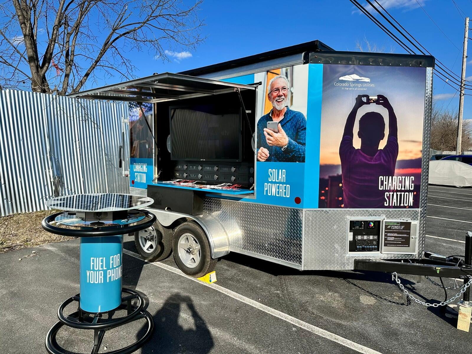 Use the Sun to Stay Connected. The POWER UP CONNECT™ solar charging tables feature a 68 watt solar panel as the table top. Energy is stored in a 50Ah battery and a power cable is incorporated to recharge when the Sun is not available. Real-time volt meters display the voltage available so you always know the battery status.